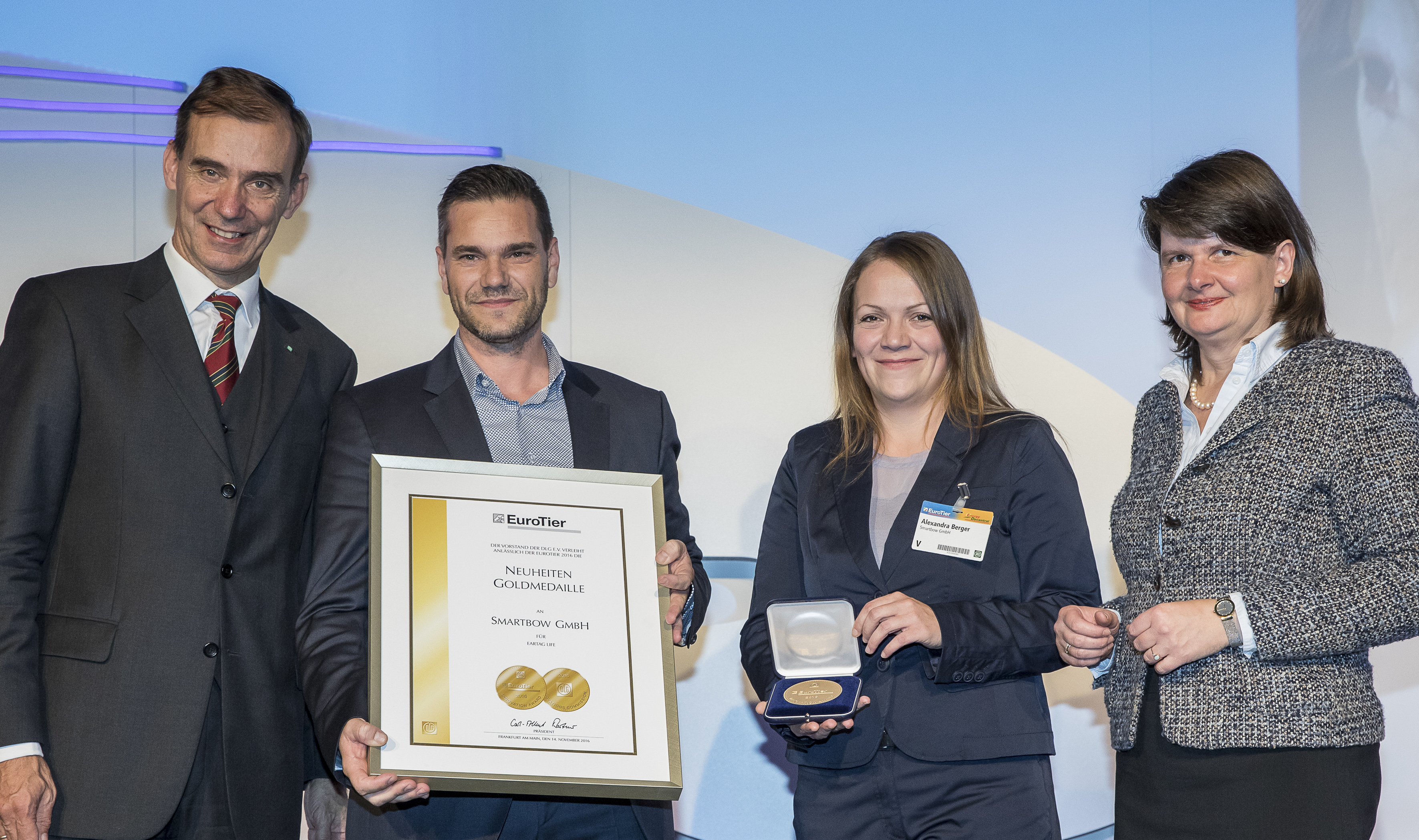 Die DLG (Deutsche Landwirtschaftsgesellschaft) verlieh im Rahmen der Eurotier 2016, der weltweit größten Messe für Tierhaltung, auch dieses Jahr wieder Auszeichnungen an Aussteller für besonders innovative Produkte. Dabei wurde der Smartbow GmbH mit Sitz in Weibern, Oberösterreich, unter 251 Teilnehmern nicht nur die Auszeichnung „Innovation Award Eurotier 2016“ verliehen, das völlig neue Konzept der Tierüberwachung von Geburt an mithilfe der neuen Ohrmarke „Eartag LIFE“, überzeugte die unabhängige Expertenjury für die Goldmedaille. Insgesamt wurden 4 Goldmedaillen und 21 Silbermedaillen verliehen. Für den Geschäftsführer Wolfgang Auer ist es bereits die zweite Auszeichnung auf der Eurotier.